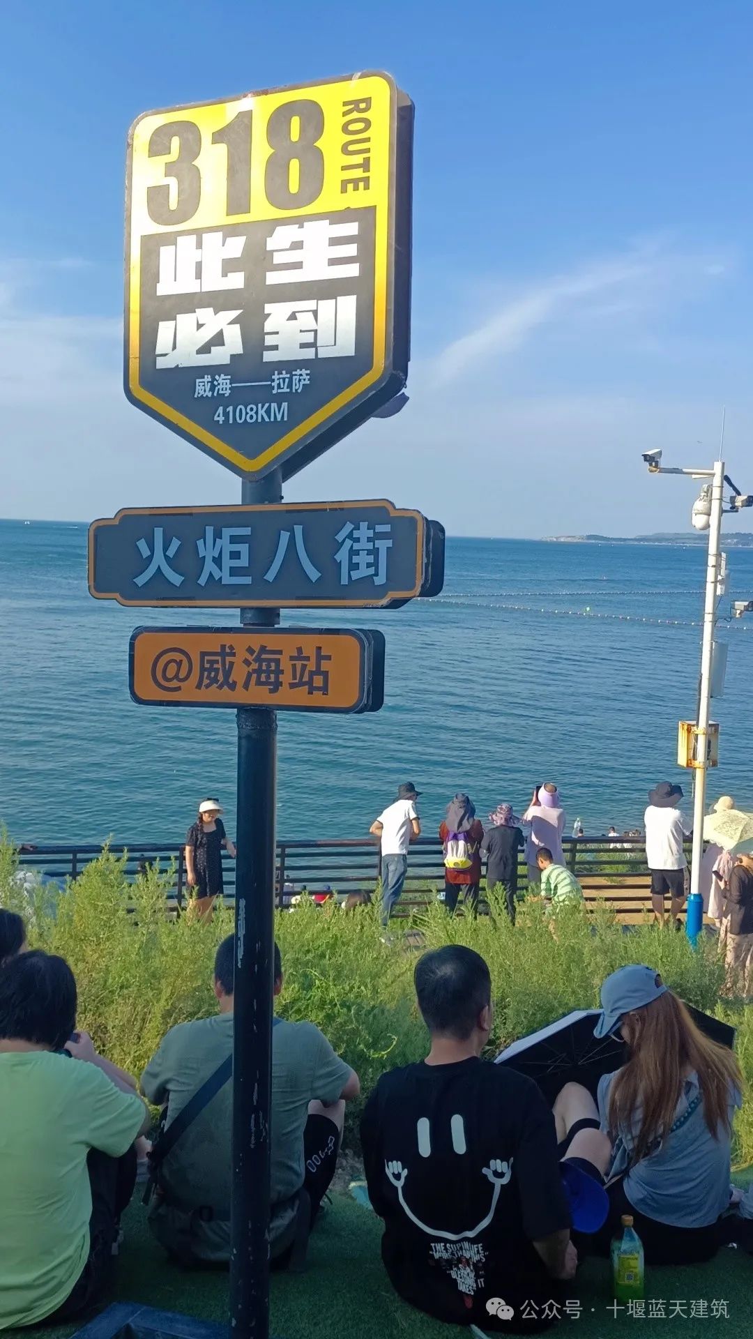 路的盡頭是海,浪漫的盡頭是威海,彩色的房子,湛藍(lán)的天空,迎著太陽,吹著海風(fēng),分外美好。站在幸福門下,我們拍下了藍(lán)天人的幸福大合照。
